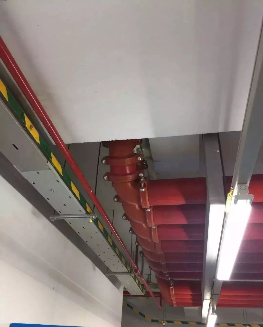 成排管道,成排成線,支吊架牢固,管道刷漆觀感美觀。