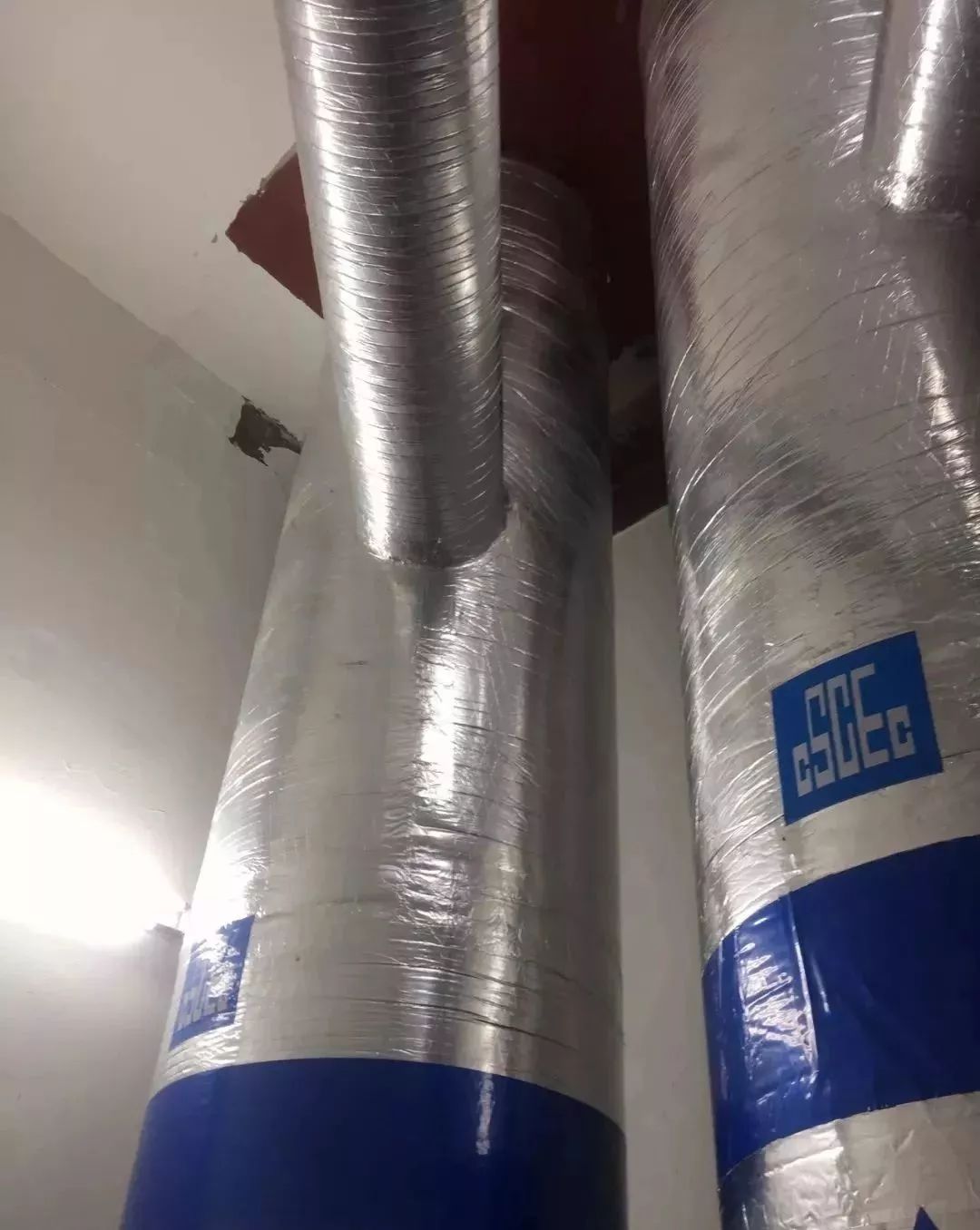 空調(diào)水管道,坡度正確,支架布置合理,保溫整齊美觀。