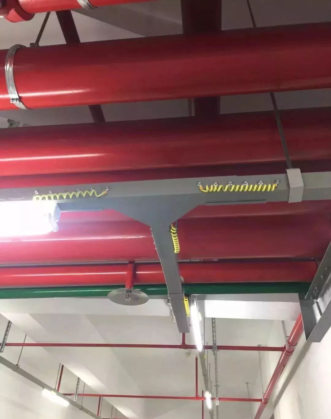 消防噴淋管道間距一致,標識清楚、成排成線。