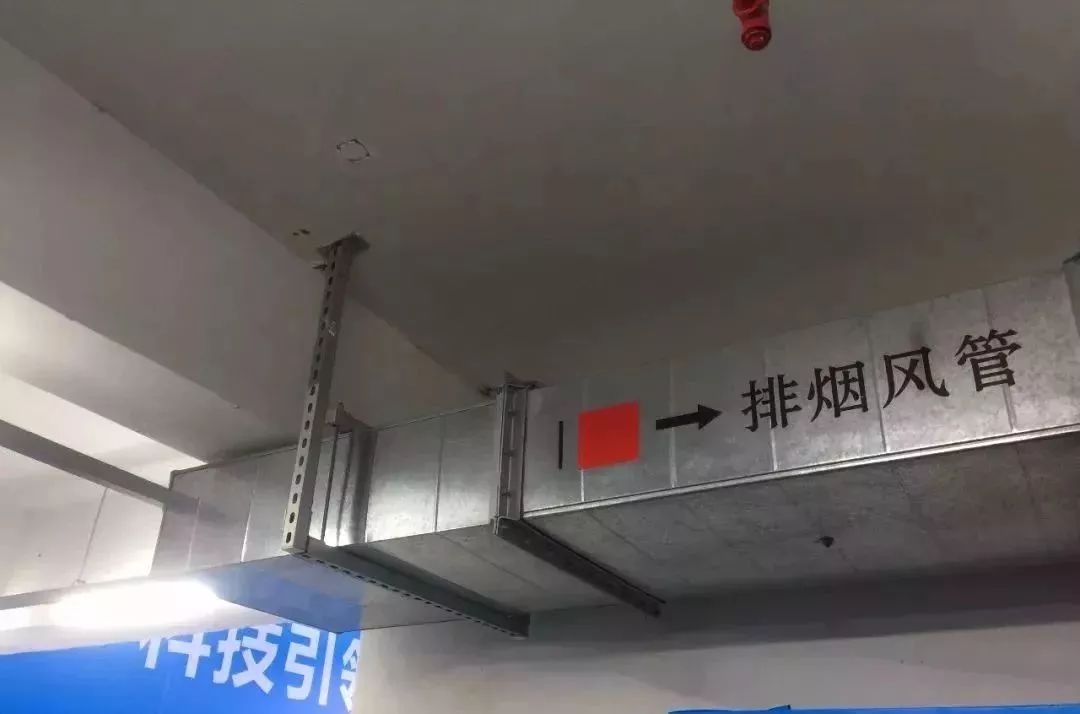 排煙管道安裝,法蘭采用倒角法蘭,美觀實用,標識清楚。